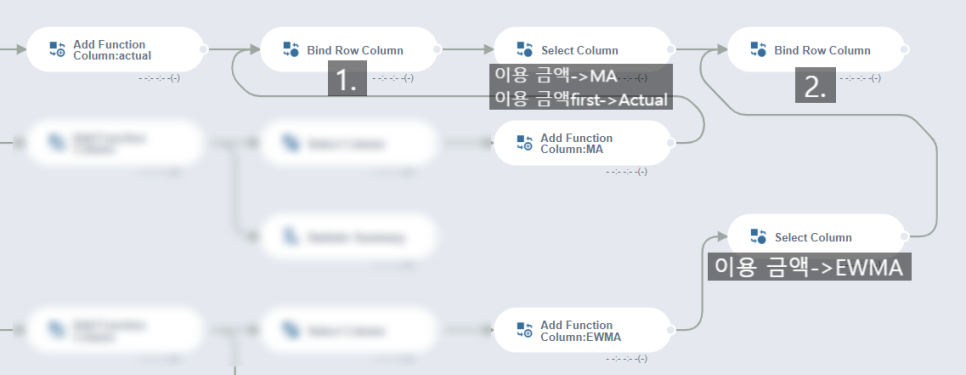 이 때 Select Column을 활용해 각 이용금액을 모델 별 이름으로 컬럼명을 변경해줍니다.