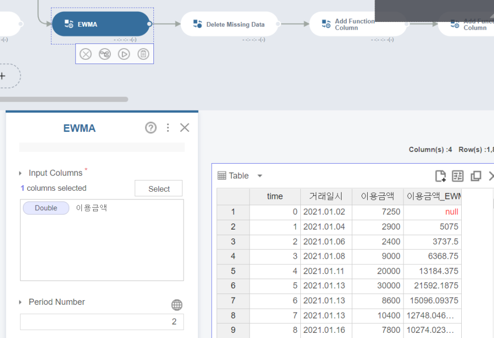 그리고 Add Function Column:MA, Add Function Column:EWMA