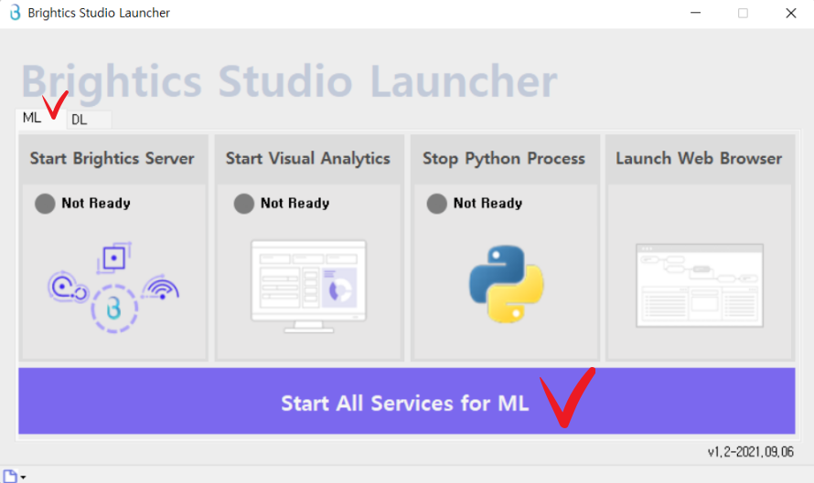 Start All Servies for ML/DL을 클릭해 줍니다.